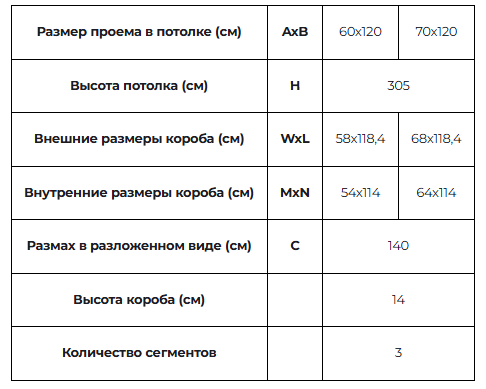 - Габариты проема, мм