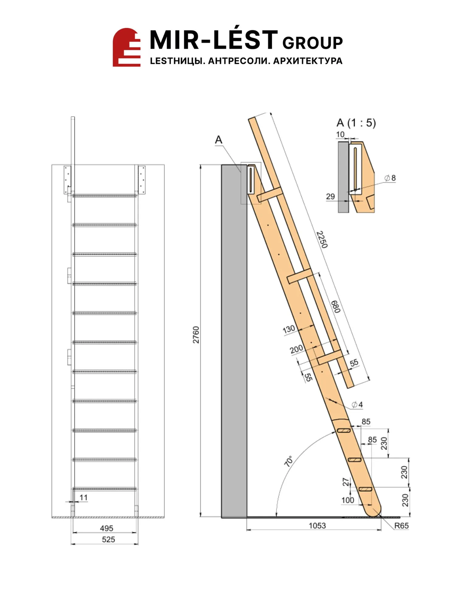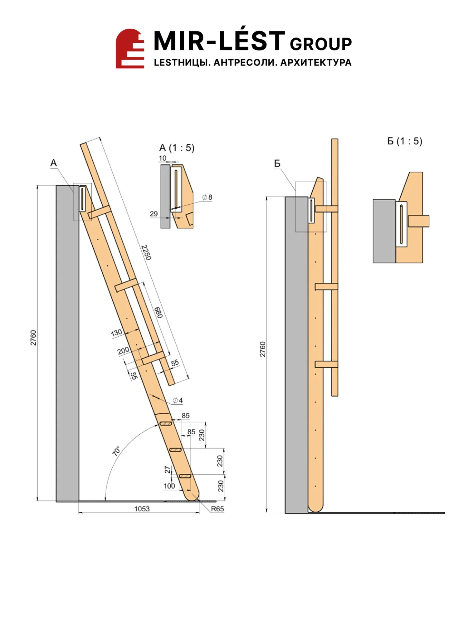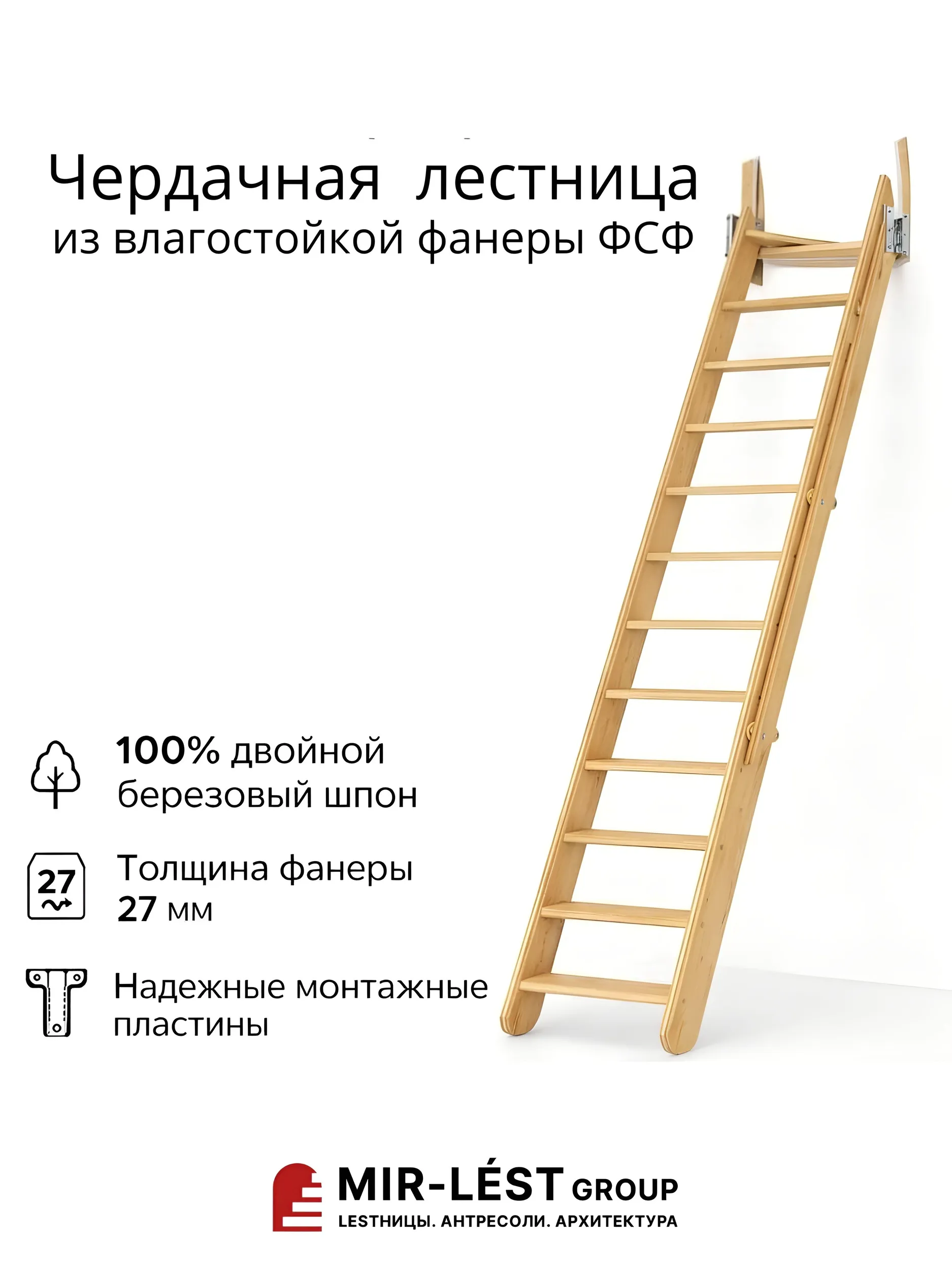 Чердачная лестница M-013 из березы multiplex