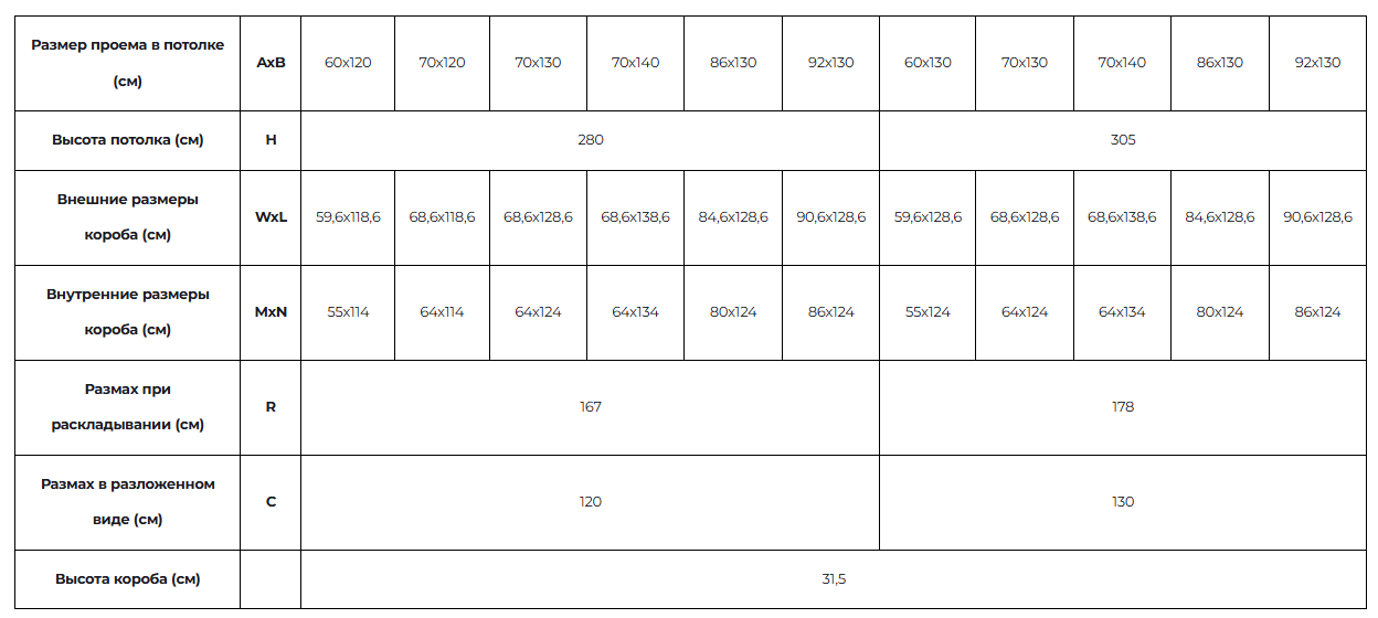 - Габариты проема, мм