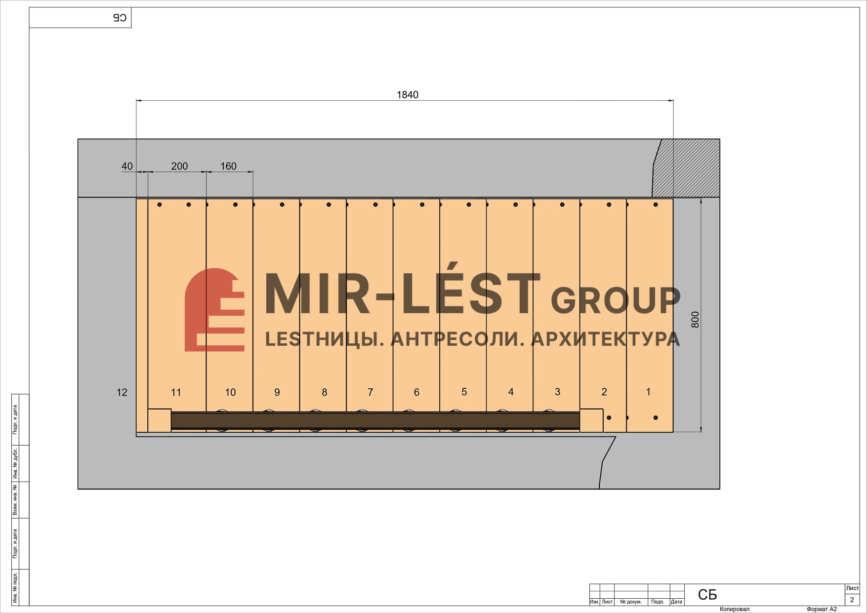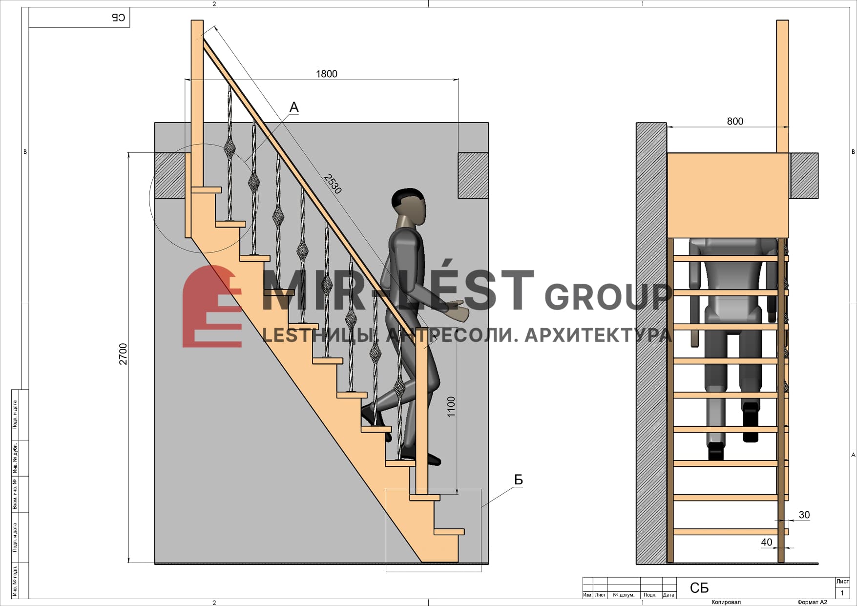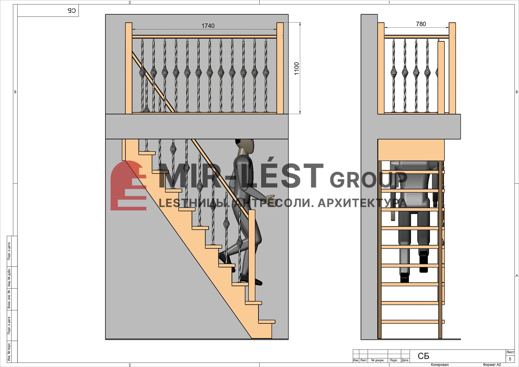 - Габариты лестницы в плане, мм