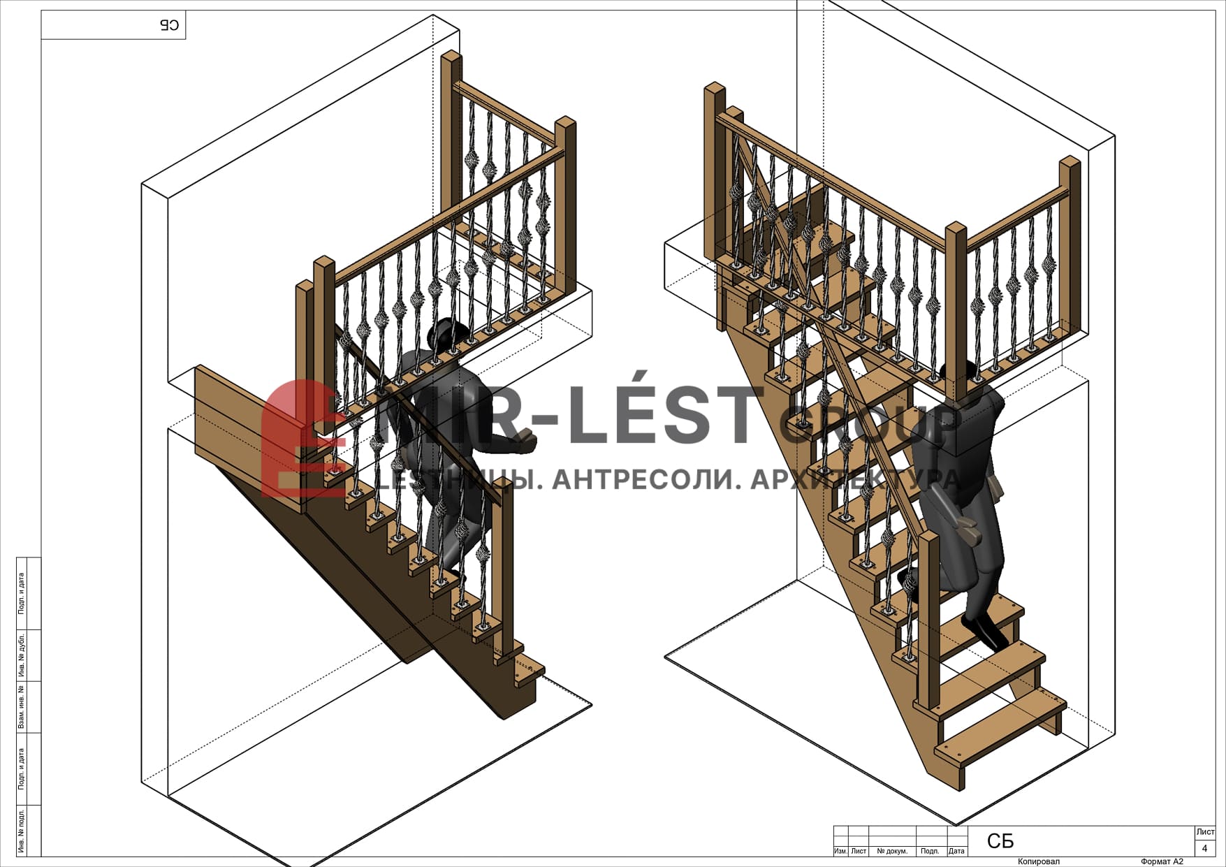 Деревянная лестница на второй этаж ЛС-10 Pro Barocco Black «MIR-LEST»