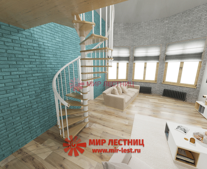 Винтовая лестница Spiral White D120 (D 120) («Мир Лестниц») Дуб